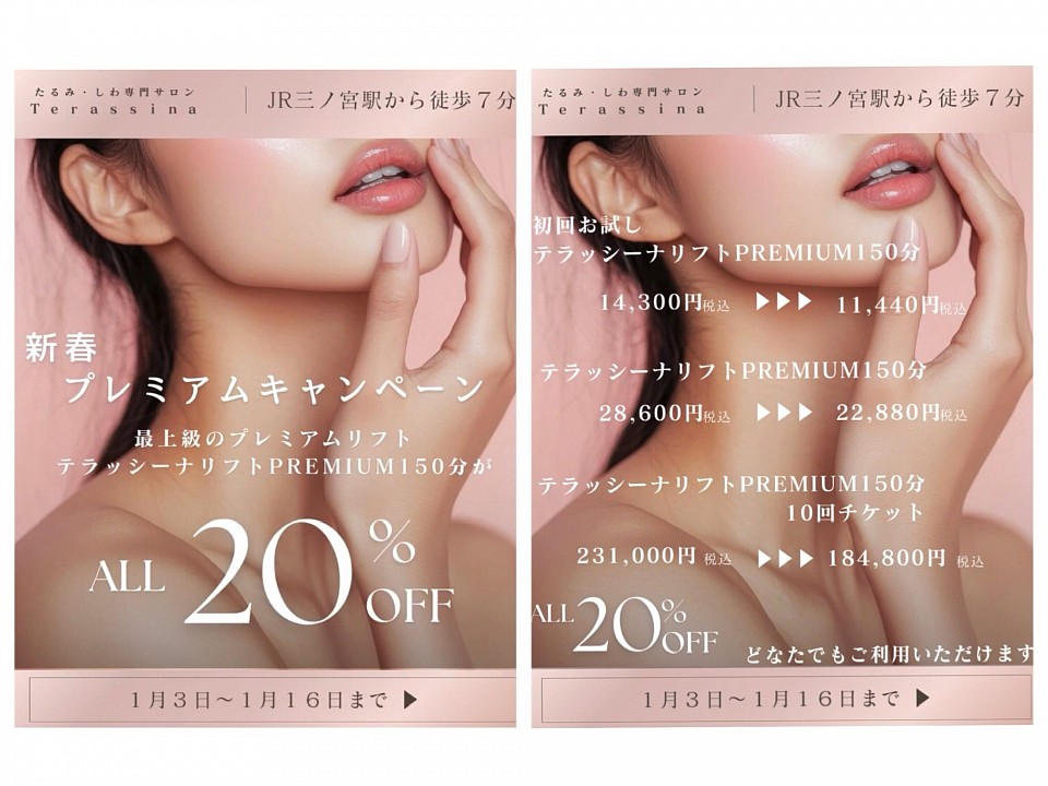 令和8年1月3日〜1月16日の期間『新春プレミアムキャンペーン』を実施いたします。
